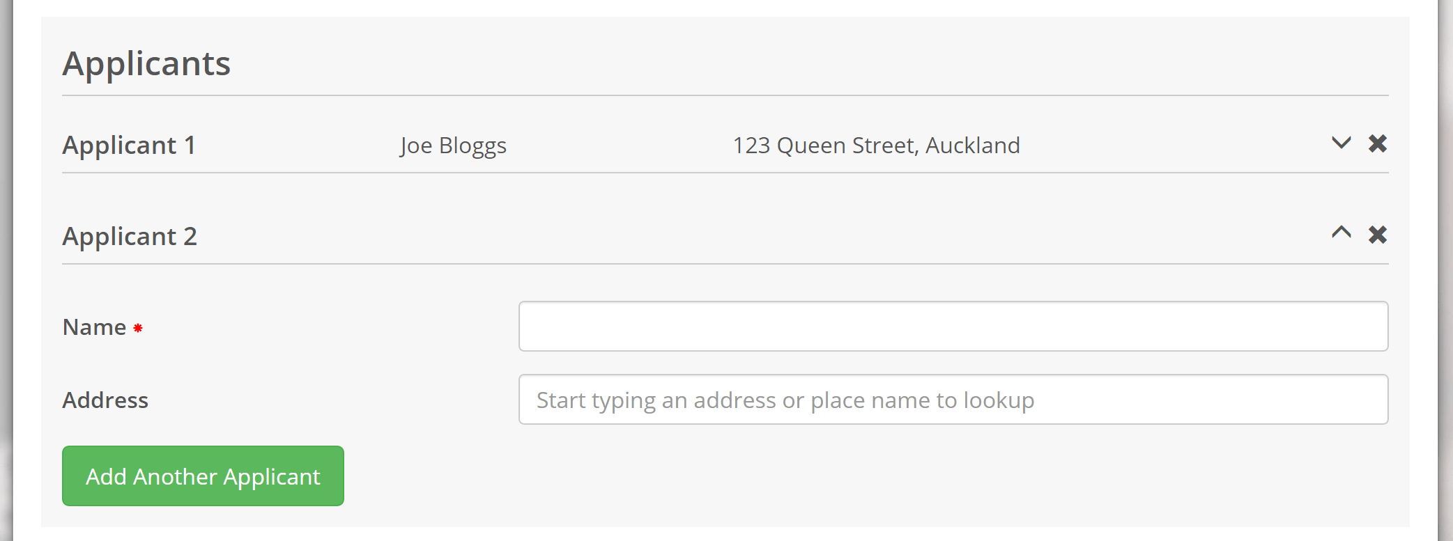 Here's another concept that works much better with software. Instead of bloating a form with space for a variable number of items e.g. applicants, groups can be dynamically repeated as many times as required, within limits you define.
